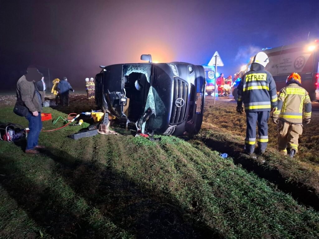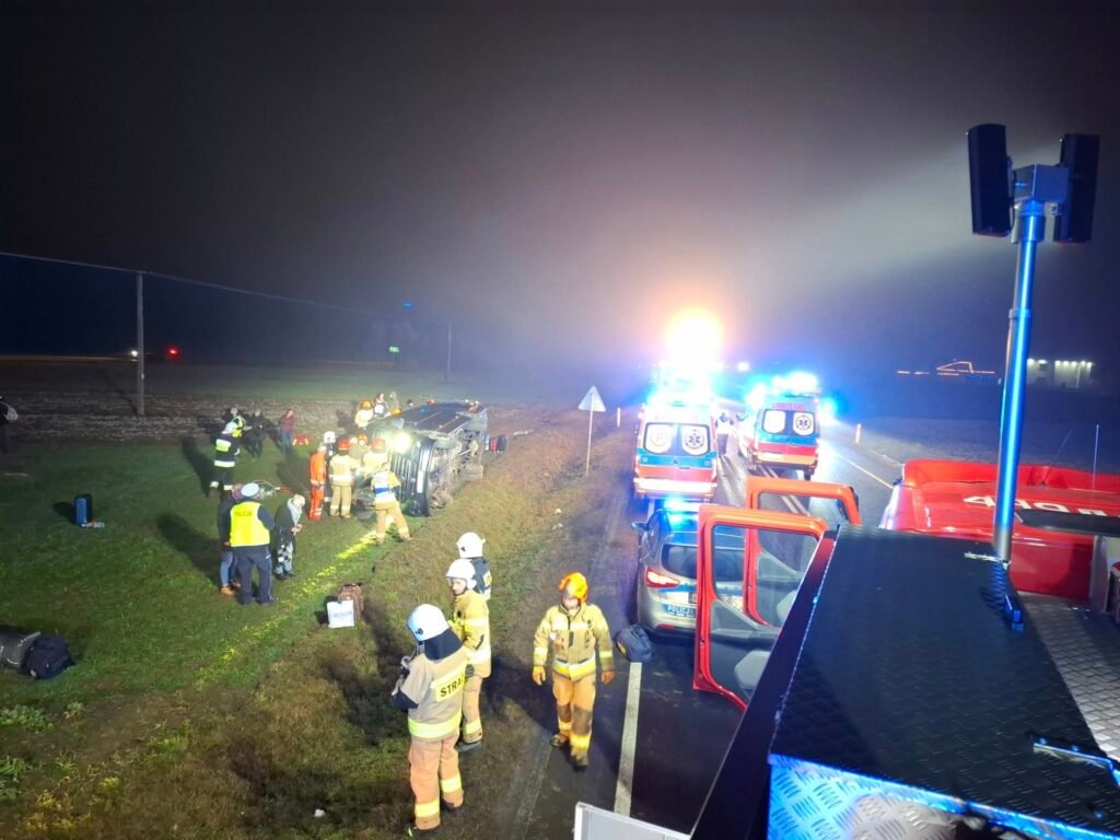 Do groźnie wyglądającego wypadku doszło 28 grudnia 2024 r. w miejscowości Wlonice. Bus przewożący 19 osób, złapał pobocze i wypadł z trasy. 6 pasażerów zostało przetransportowanych do szpitala.
